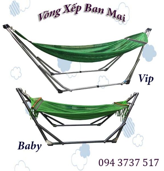Chi tiết bộ võng xếp mini cho em bé và bộ võng người lớn Ban Mai