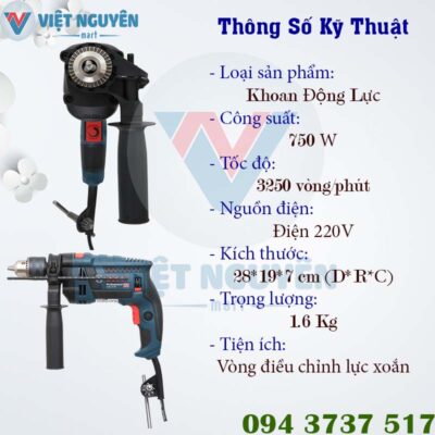 - 1.2 Thông số kỹ thuật máy khoan động lực điện Bosch GSB 16 RE 750W chính hãng