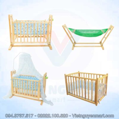 Mô tả nôi gỗ em bé 4 trong 1 đa năng Vinanoi VNN301