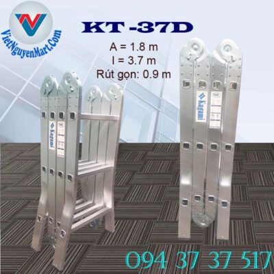 Thang nhôm Kagami chữ A KT -37D với chiều cao sử dụng chữ A đến 1.8 m, cùng lúc có thể duỗi thẳng đến 3.7 m là sự lựa chọn hàng đầu hiện nay.