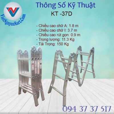 Chi tiết thông số Kỹ Thuật Thang Nhôm Gấp Xếp Đa Năng Kagami KT -37D: