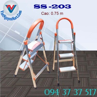 Thang nhôm ghế tay vịn Inox Kagami Nhật Bản SS -203 nhập khẩu nguyên chiếc với chiều cao sử dụng 0.75 m, luôn được ưu tiên lựa chọn sử dụng nhiều nhất hiện nay.