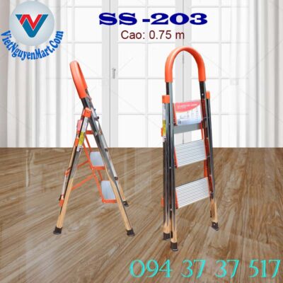 Thang nhôm ghế tay vịn Inox Kagami Nhật Bản SS -203 với chiều cao tối đa 0.75m được nhập khẩu trực tiếp. Dòng thang nhôm gia đình được yêu thích nhất hiện nay.