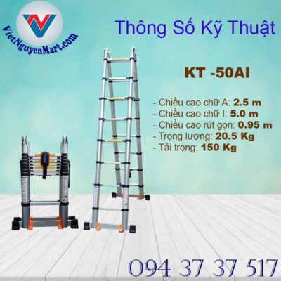 Thang nhôm rút đôi chữ A Nhật Bản KT -50AI sử dụng đa năng thích hợp với mọi không gian. Là sự lựa chọn tối ưu chuyên dụng cho các công việc trên cao.
