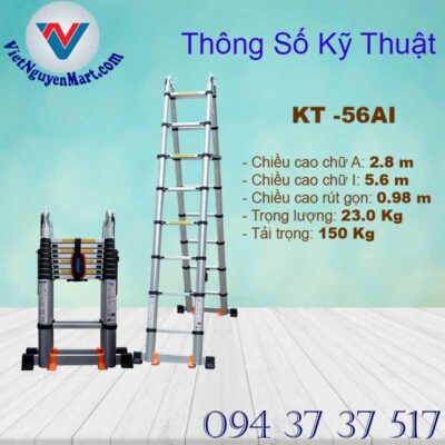 Thang nhôm rút đôi chữ A Nhật Bản KT -56AI sử dụng đa năng thích hợp với mọi không gian. Là sự lựa chọn tối ưu chuyên dụng cho các công việc trên cao.