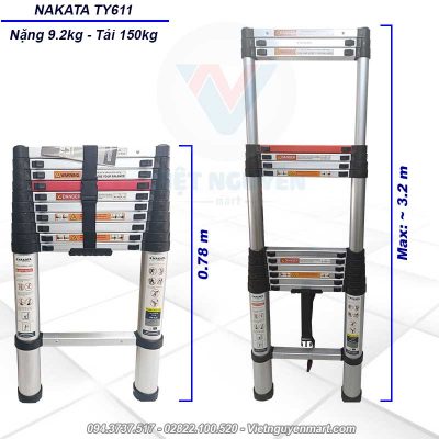 Liên hệ tư vấn thang nhôm rút đơn Nakata 3m2 TY-611 Nhật Bản