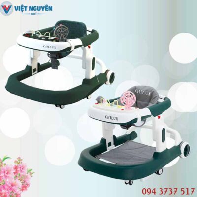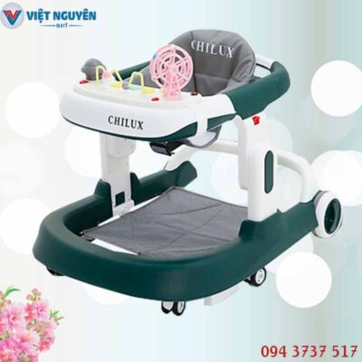 Tiện ích xe tập đi cho bé Chilux màu xanh rêu đa năng an toàn